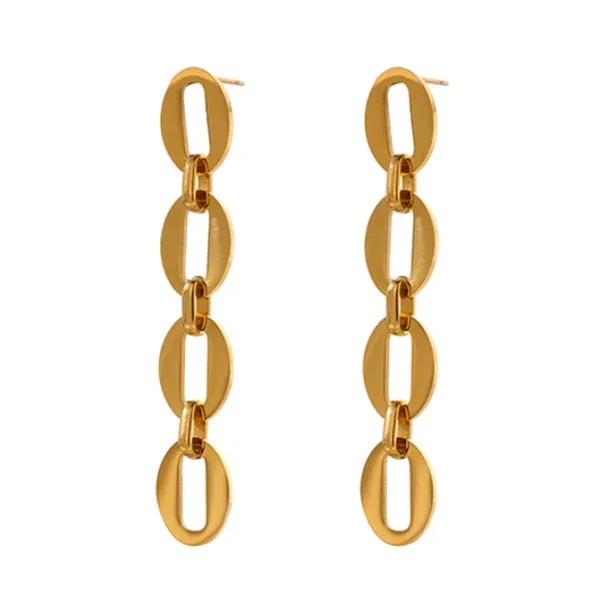 • Craquez pour ces magnifiques boucles d’oreilles pendantes longues, en plaqué or 18k fait de maillons tendance style cheval