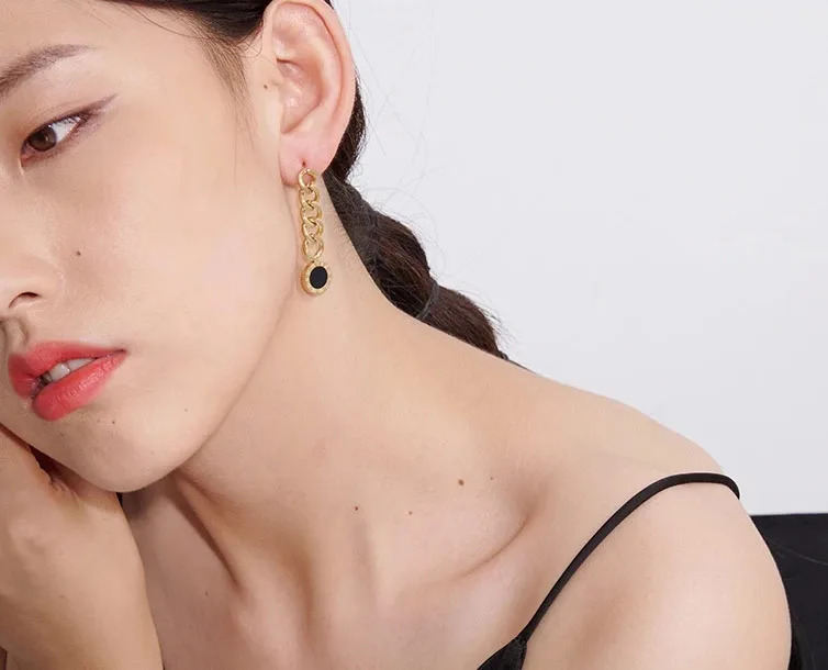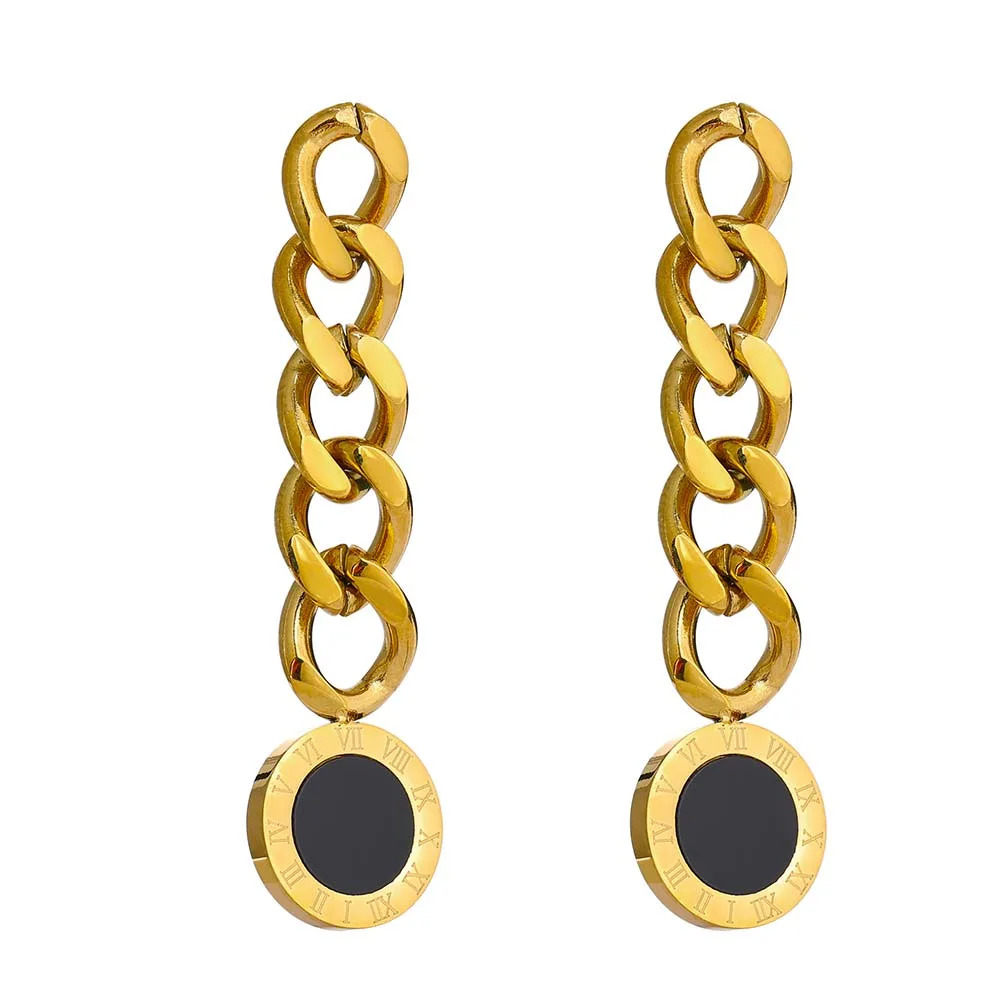 La chaîne de maillons épais ajoute du volume et du caractère, tandis que le pendentif rond en nacre noire apporte une touche de mystère et de sophistication. Le contour en or du pendentif est orné de chiffres romains finement gravés, ajoutant une dimension classique à ce design moderne. Parfaites pour les occasions spéciales ou pour ajouter une touche d'élégance à une tenue quotidienne, ces boucles pendantes sont un choix incontournable pour celles qui souhaitent allier tradition et modernité dans un bijou unique.