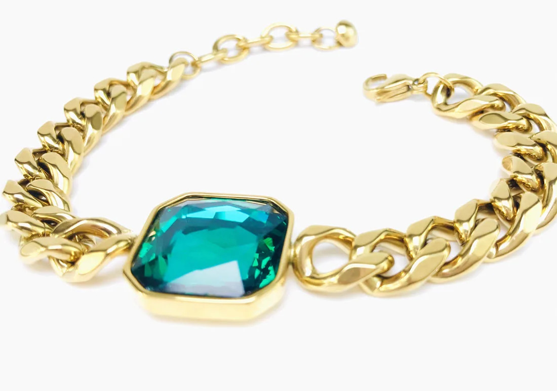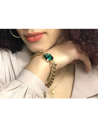 Bracelet Femme Gourmette Or Femme Zircon Vert
