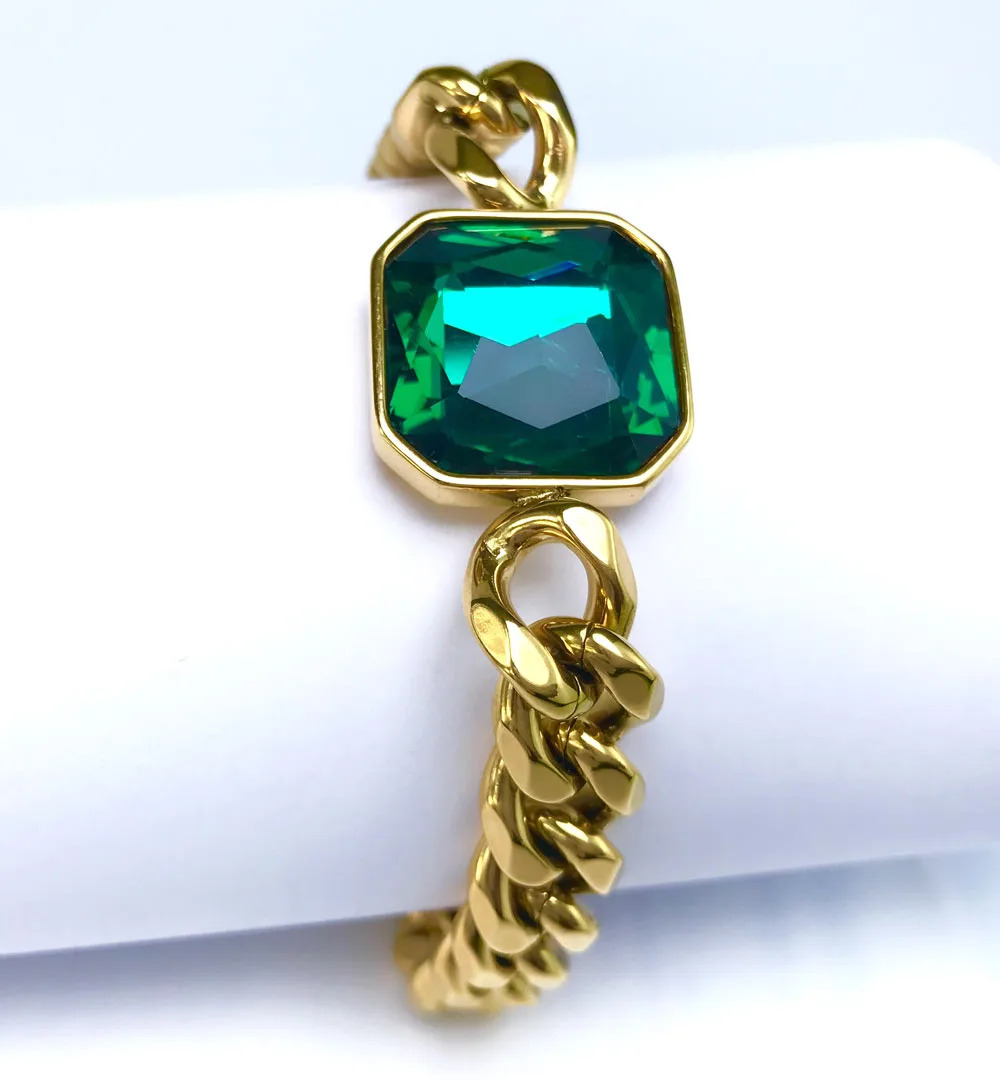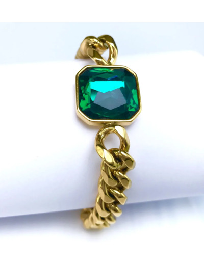 • Éclatante  gourmette bracelet  tendance pour femme orné d’un zircon vert de qualité AAA design carré