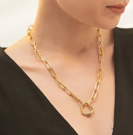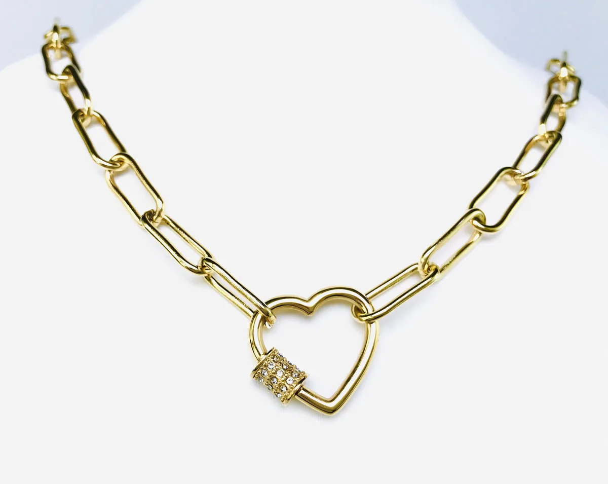 • Superbe collier tendance pour femmes avec petit cadenas sur un cœur orné de petits zircon blancs de qualité AAA, bijou en plaqué or Jaune 18k