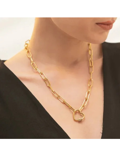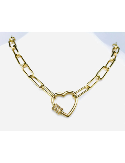Collier Cadenas Or Jaune Cœur diamants Zircon