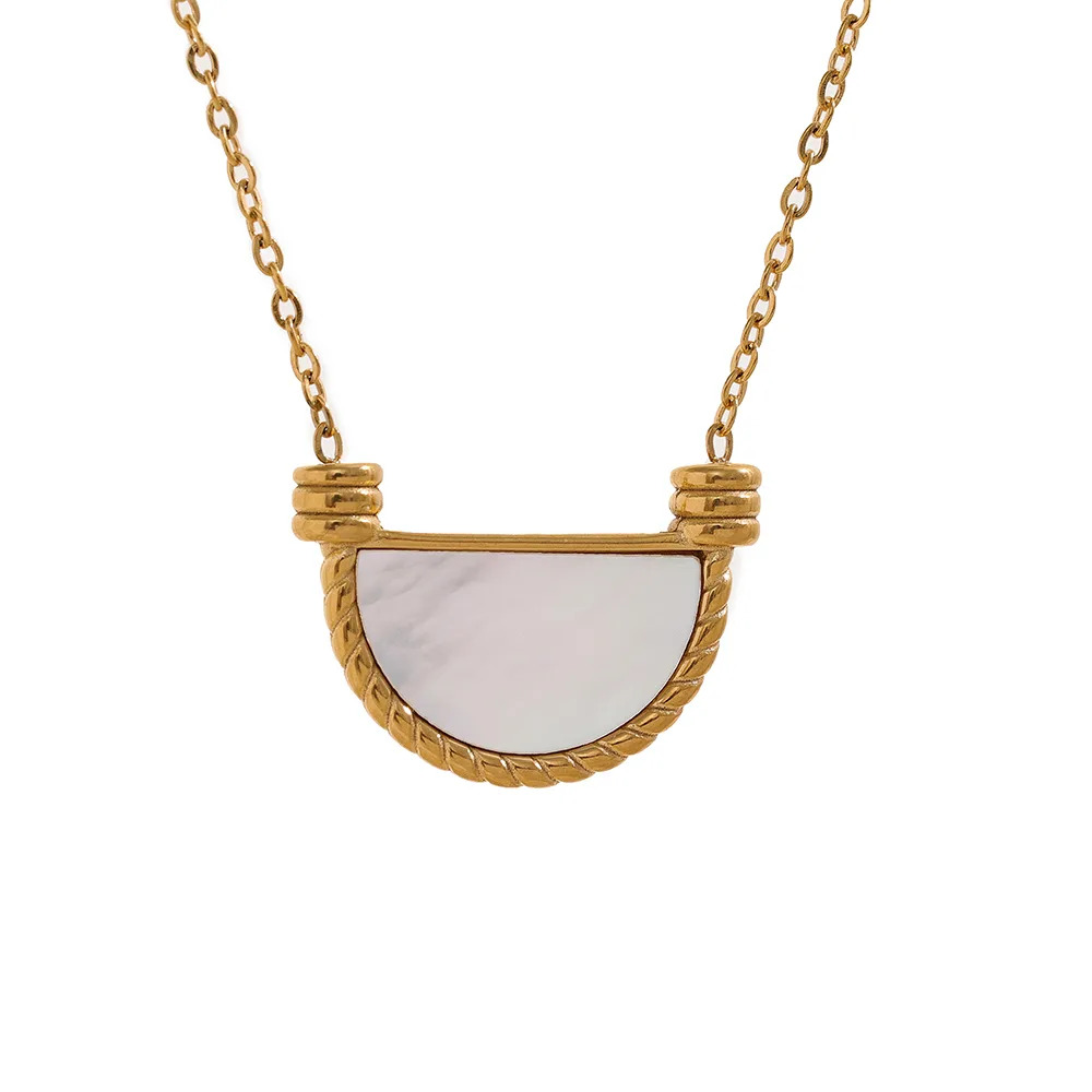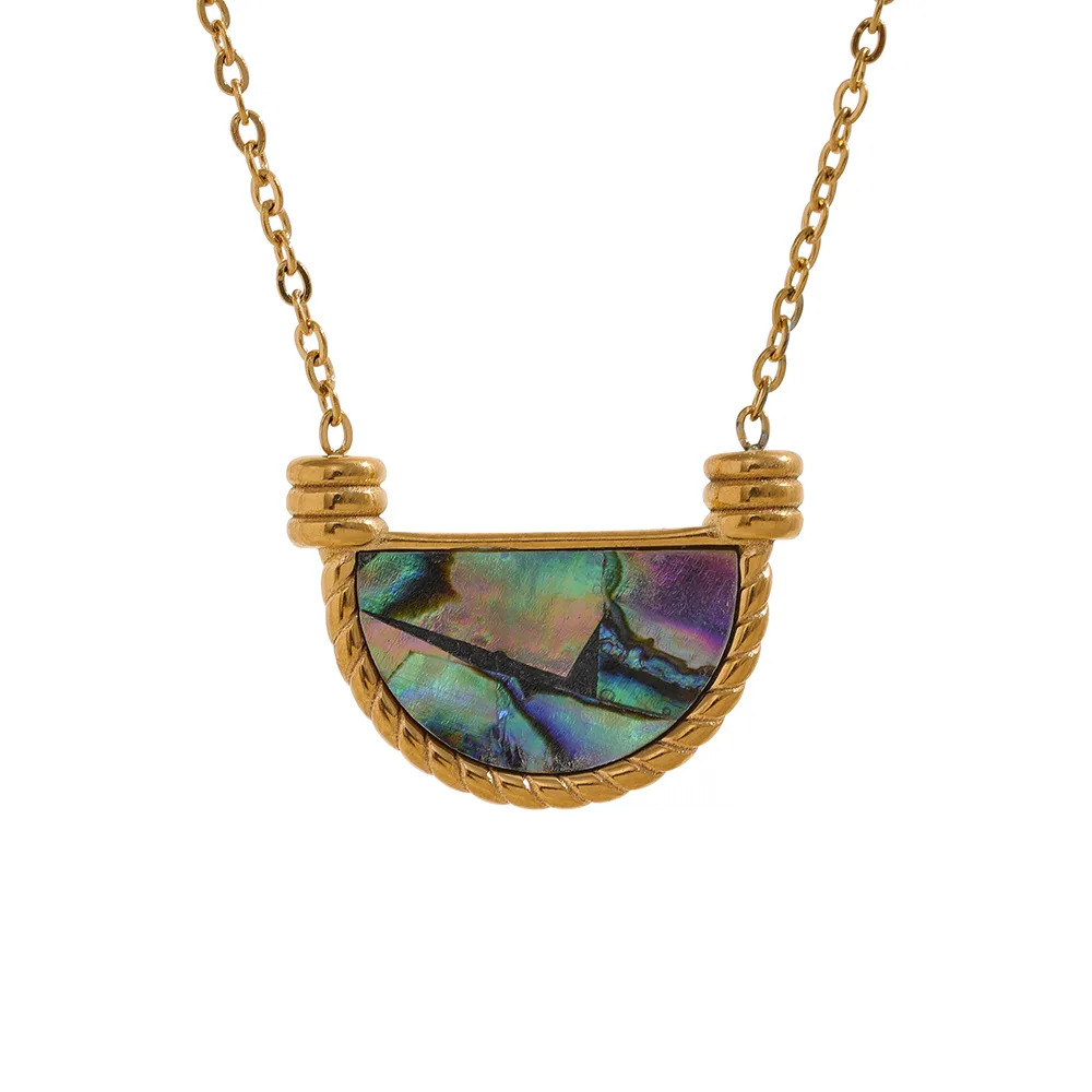 • Découvrez toute la subtilité de ce collier en nacre pour femme et en doré à l’or 18 k. Elégant bijou pendentif en forme de demi-cercle avec de la nacre naturelle, commandez au choix en blanc ou l’éclat multi couleur de l’ormeau