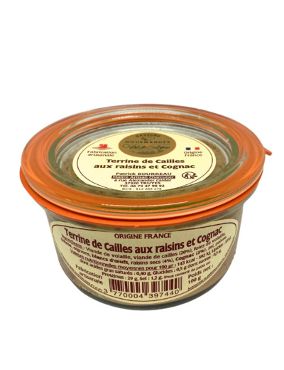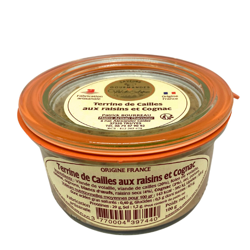 – Une terrine de cailles aux raisins et Cognac (100g)