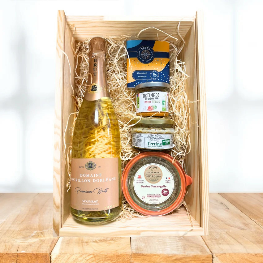 Le mot de l'équipe : Tourangoule propose des coffrets gourmands (paniers garnis) composés de produits du terroir exclusivement locaux (Touraine). La démarche est éco-responsable (pas de plastique, zéro déchet, empreinte carbone), sociale & solidaire (coffrets en bois réalisés par des ESAT tourangeaux, confitures réalisées par l’association CRI pour aider à l’insertion professionnelle des femmes ! Nous privilégions le circuit court avec des coffrets fabriqués en Touraine tout comme la fibre de bois et les produits qui composent ces coffrets. Notre but est simple : Vous offrir le meilleur de la gastronomie Tourangelle (dans la démarche comme pour vos papilles) !