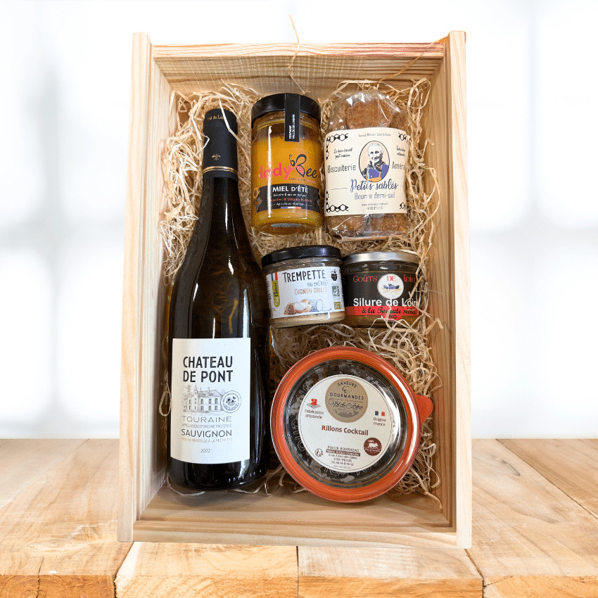 Le mot de l'équipe : Tourangoule propose des coffrets gourmands (paniers garnis) composés de produits du terroir exclusivement locaux (Touraine). La démarche est éco-responsable (pas de plastique, zéro déchet, empreinte carbone), sociale & solidaire (coffrets en bois réalisés par des ESAT tourangeaux, confitures réalisées par l’association CRI pour aider à l’insertion professionnelle des femmes ! Nous privilégions le circuit court avec des coffrets fabriqués en Touraine tout comme la fibre de bois et les produits qui composent ces coffrets. Notre but est simple : Vous offrir le meilleur de la gastronomie Tourangelle (dans la démarche comme pour vos papilles) !