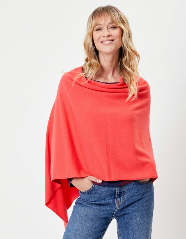 Poncho en maille douce au col châle. Iconique de La Fiancée, ce basique uni est confortable et facile à porter. Entre la cape et le pull, ce poncho original s'enfile et fait le match sur un top imprimé.