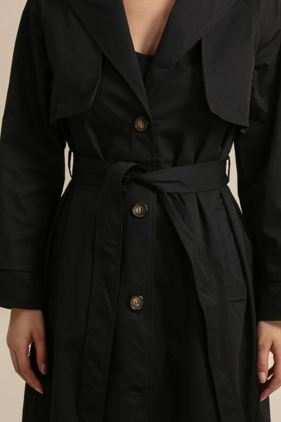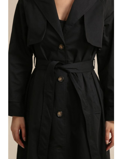 Confectionné dans un tissu fluide mais structuré, il est idéal pour la mi-saison et les journées de transition. À la fois élégant et facile à porter, ce trench noir deviendra votre meilleur allié pour sublimer vos looks du quotidien ou vos tenues de bureau.