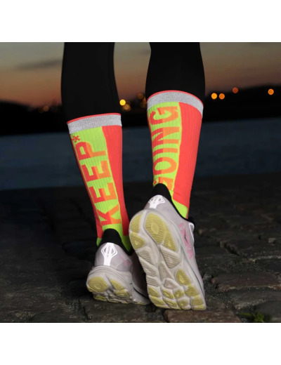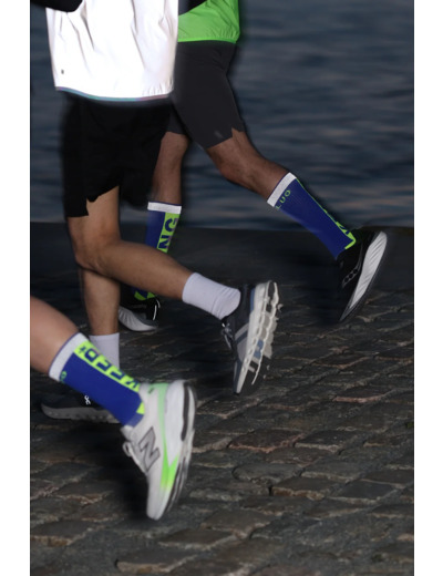Ces chaussettes, parfaitement adaptées à l'activité sportive et notamment la course à pied ou le vélo en zone urbaine, brille toute la nuit grâce à sa bande réfléchissante en anneau.
