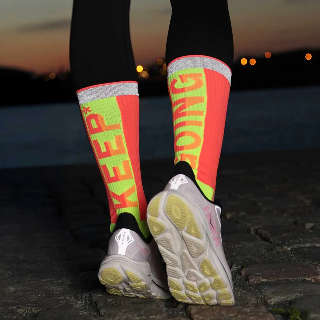 Nouveauté hiver 2025 chez Véloce : les chaussettes hautes réfléchissantes de la marque GOFLUO !