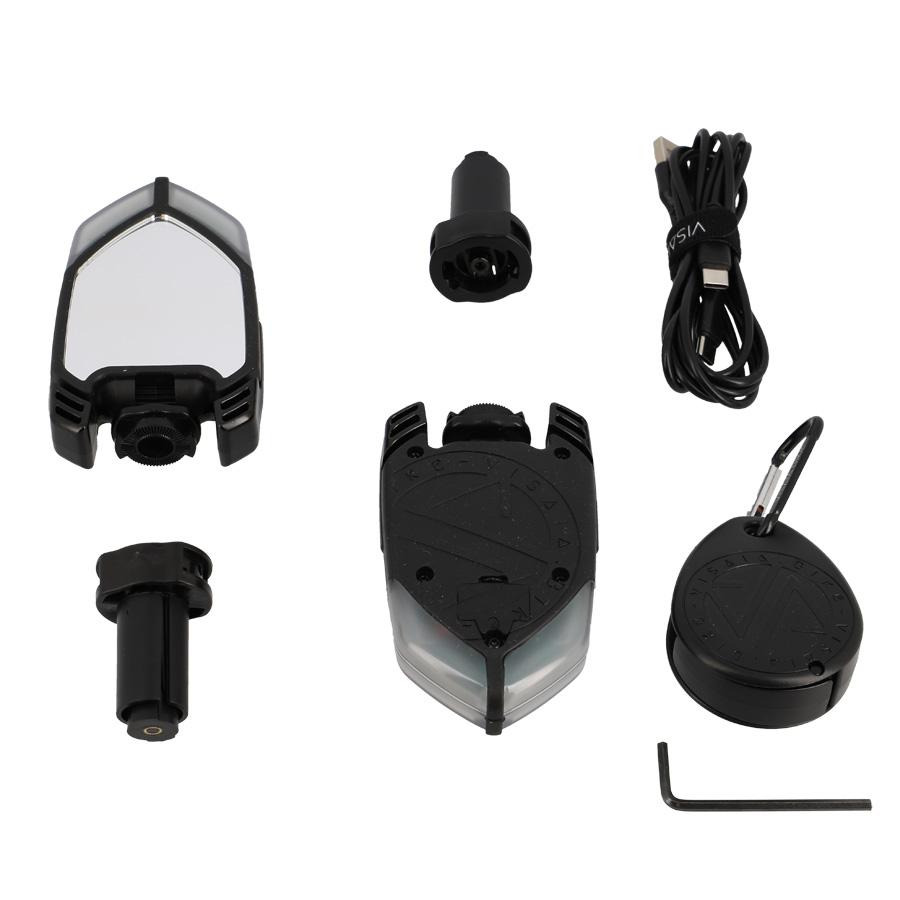 Accessoires de sécurité 2 en 1, pratiques et originaux, les rétroviseurs QLÏR de Visaia Bike permettent au cycliste de voir et être vu à vélo au quotidien. D'abord, le cycliste voit ce qui se passe derrière lui grâce aux rétroviseurs vélo à miroir incurvé. De quoi s'assurer un maximum de visibilité et prévenir tout danger. Ensuite, le cycliste se signalise grâce aux clignotants à LEDs, en forme de flèches, visibles à 360°.