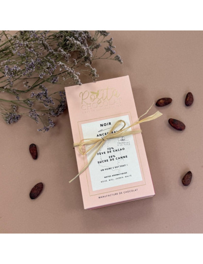 Seulement 2 ingrédients pour notre chocolat noir, sans ajout de lécithine, conservateurs, beurre de cacao ou arômes. Des fèves de cacao rares travaillées selon la méthode Bean To Bar pour découvrir le vrai goût du chocolat.